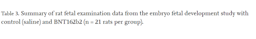 この研究は、42匹の雌のWistar Hanラットを使って行われた。21匹にファイザー社のCovid-19ワクチンが投与され、21匹には投与されなかった。モジュール4の評価者は当初、ファイザー社に対して、次の行を含めることを要求していた。